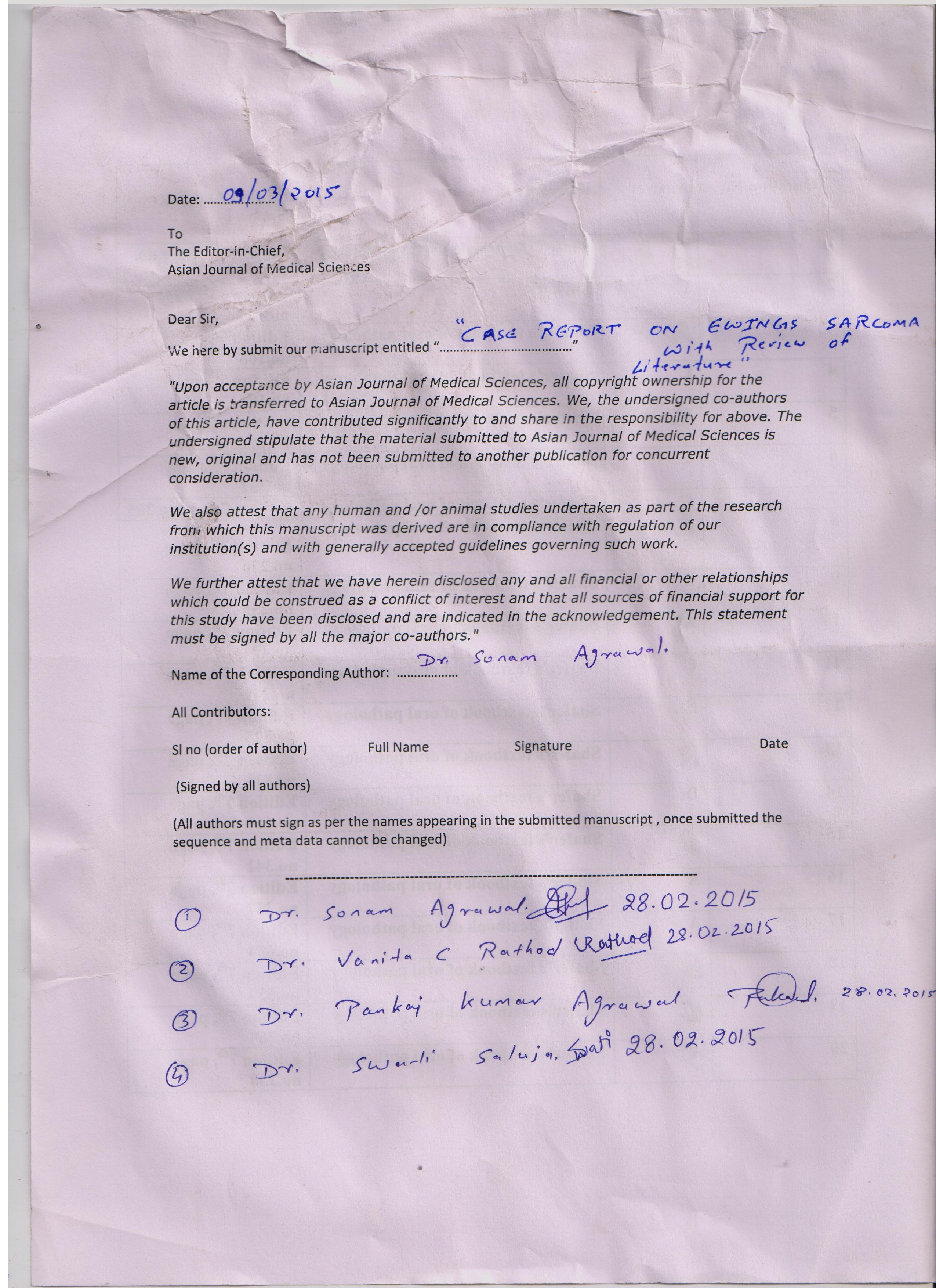 Case report on Ewing's sarcoma with review of literature