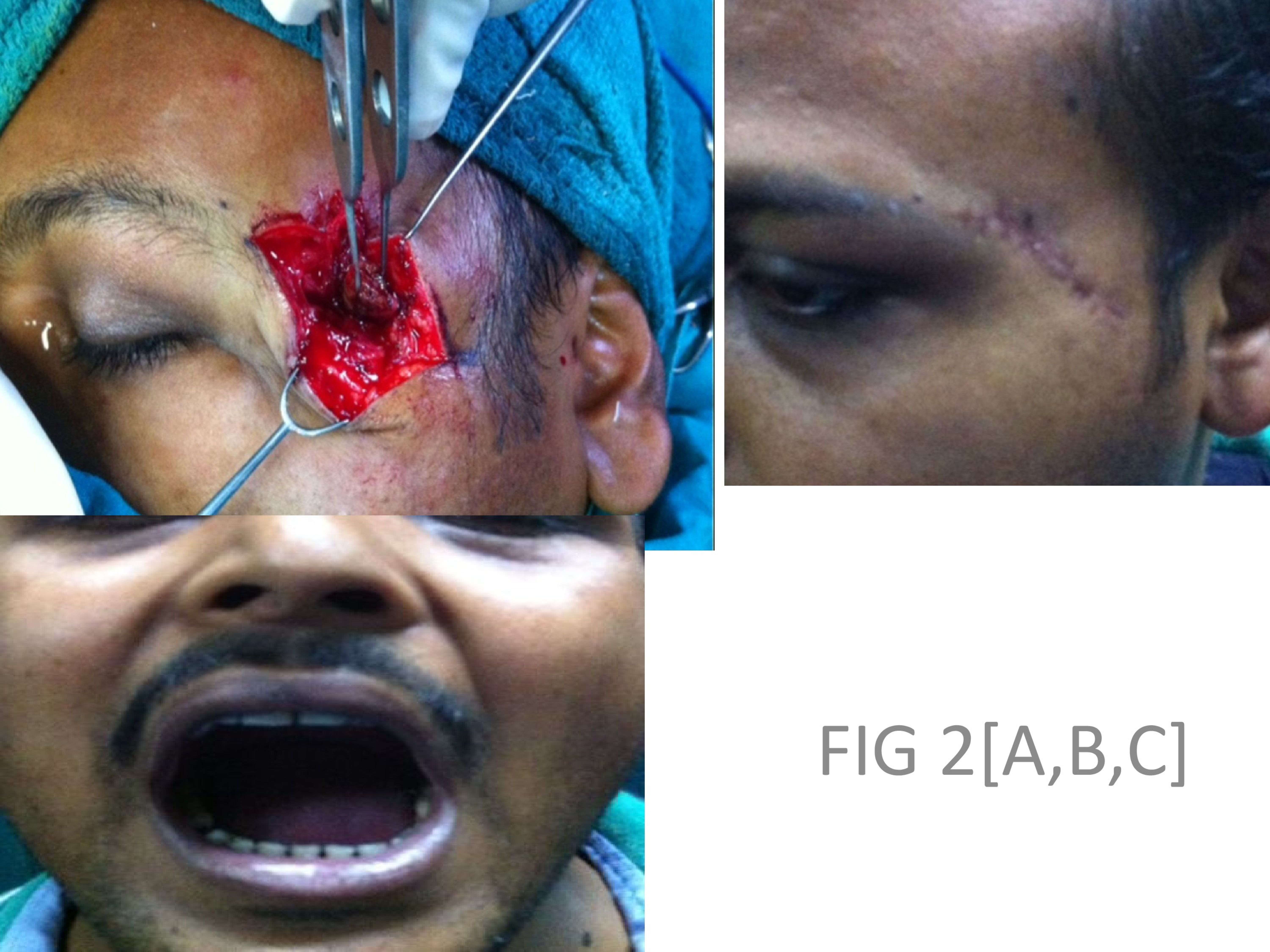 A 35 year old male was presented with discharging sinus at left frontozygomatic region with trismus for last 1 month. The patient had a past history of penetrating trauma in the vicinity of the left frontozygomatic area following road traffic accident 6 months back. 3D-CT skull was showed a linear dense radiolucent foreign body obliquely placed in the left temporal and infratemporal fossa. Trismus due to trauma usually follows road accidents leading to massive faciomaxillary injury. But in this case an initial minor penetrating injury was presented trismus in delayed fashion. The aero digestive tract is the commonest site involved in foreign body lodgement in head and neck region. However the lodgement of foreign-body in an area of infratemporal fossa with unusual symptoms of trismus is quite rare and only few cases have been reported in the literature so far following a road traffic accident.