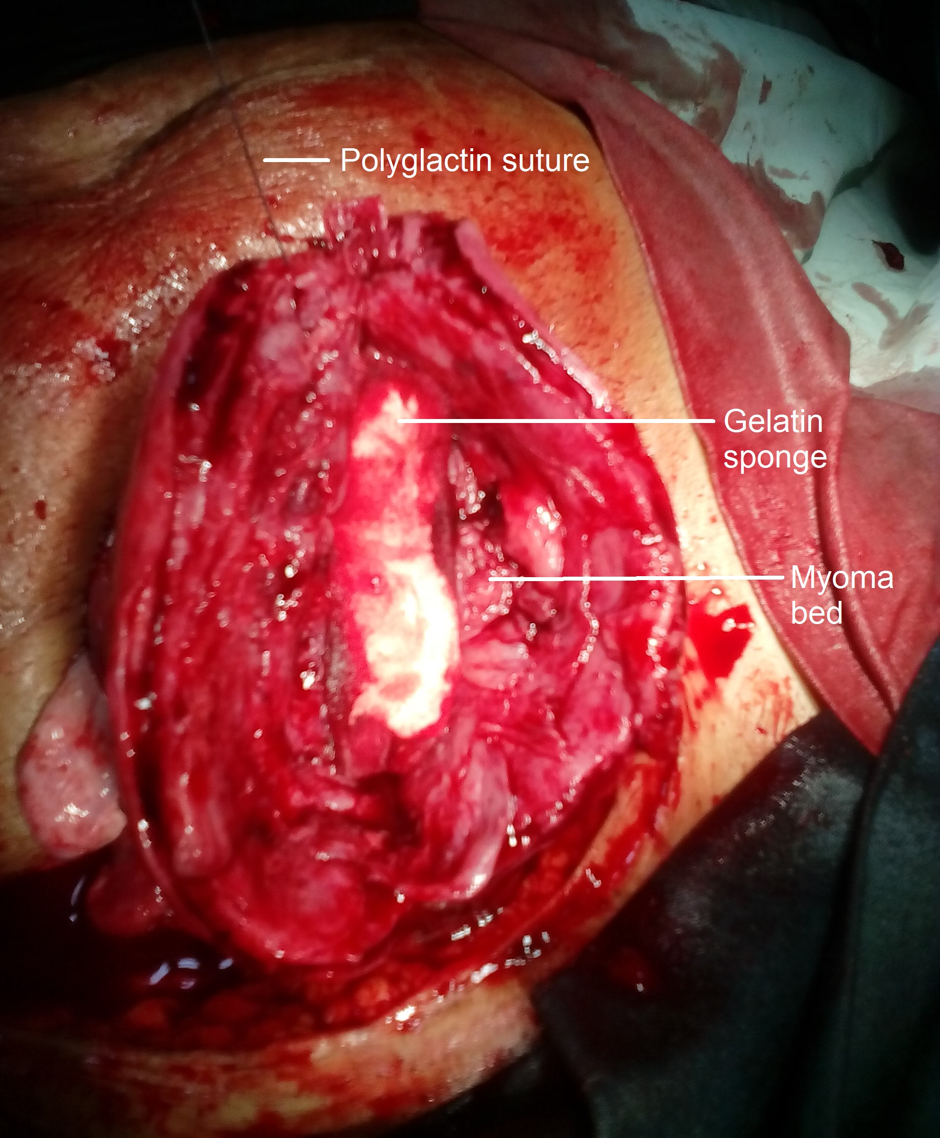 Conclusion: Gelatin absorbable sponge application over the myoma bed while closing the area is a good technique to achieve hemostasis during myomectomy.