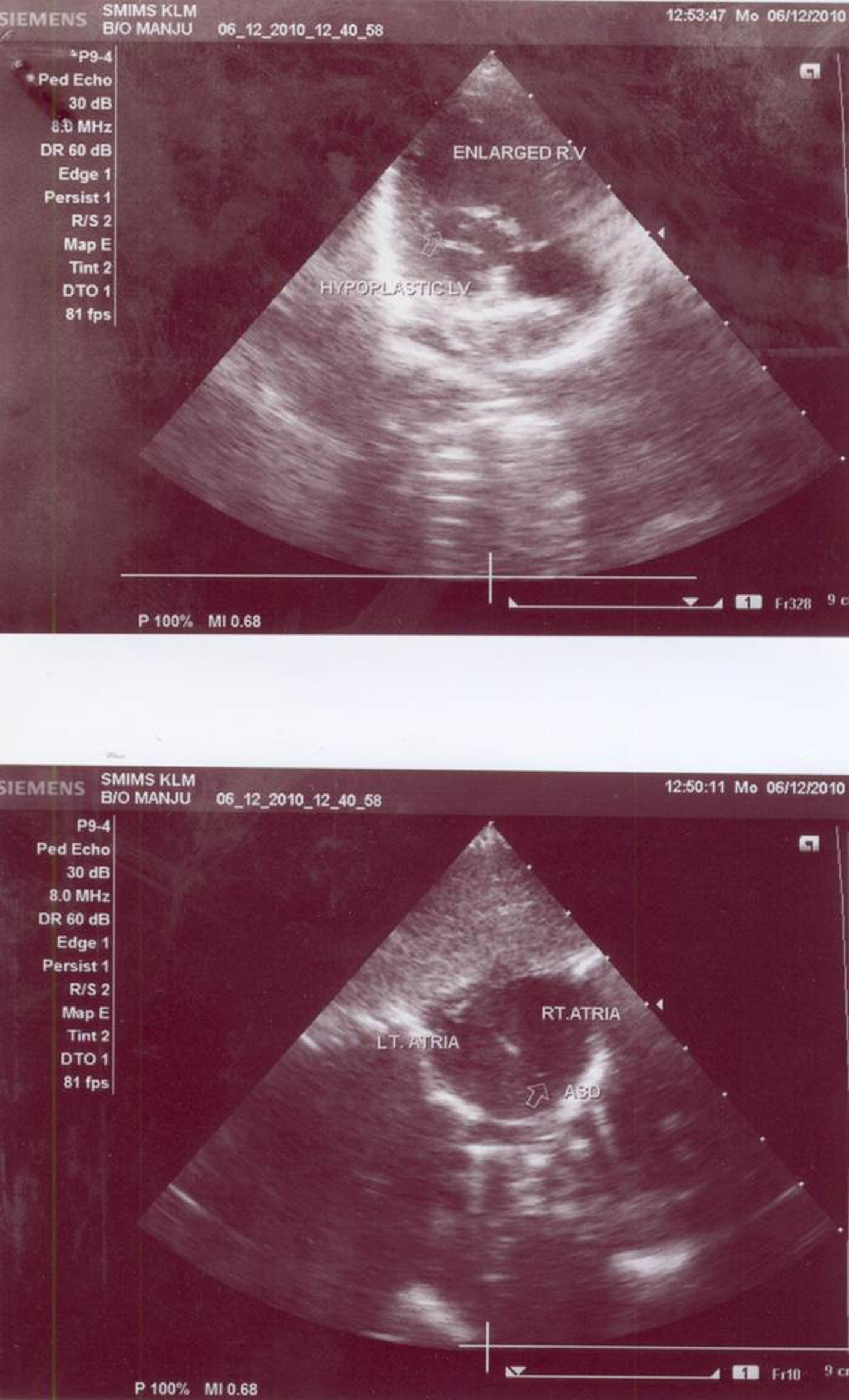 We report a case of multiple congenital anomalies in a female newborn infant, born to themother from a hill tribe. The Doppler echocardiography of the baby showed large atrial septaldefect amounting to single atrium, atretic left atrioventricular valve, large single right sidedventricle, aorta shifted to the left arising from single ventricle and diminutive hypoplasticleft ventricle. Right atrioventricular valve was normal forming single inlet into the ventricle.Pulmonary artery was small and hypoplastic and no antegrade fl ow was observed in it. Thepatient was diagnosed as having single ventricle, pulmonary atresia, patent ductus arteriosus(PDA) and major aortopulmonary collateral artery (MAPCA).