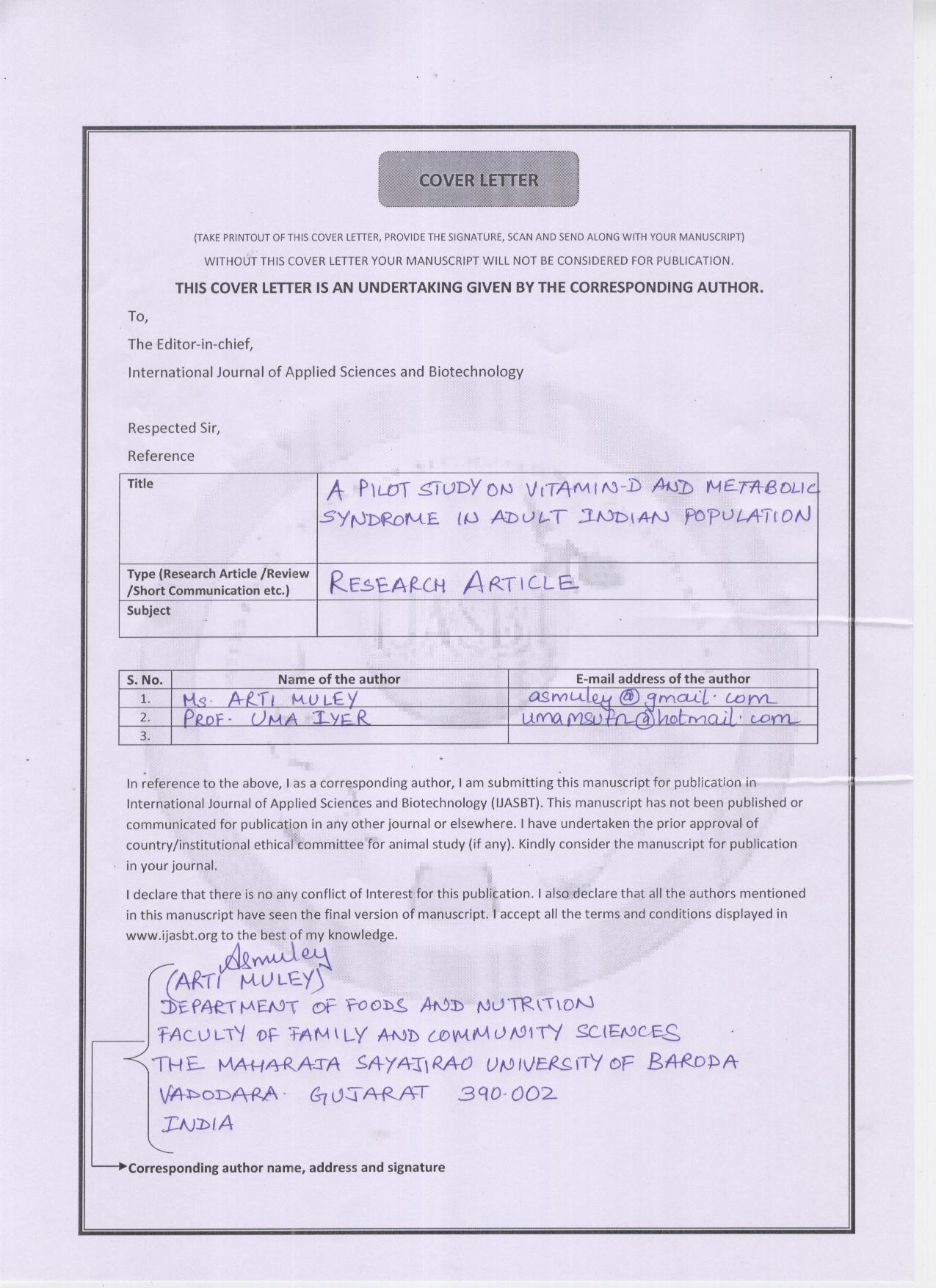 A Pilot Study on Vitamin-D Status and Metabolic Syndrome in Adult Indian Population