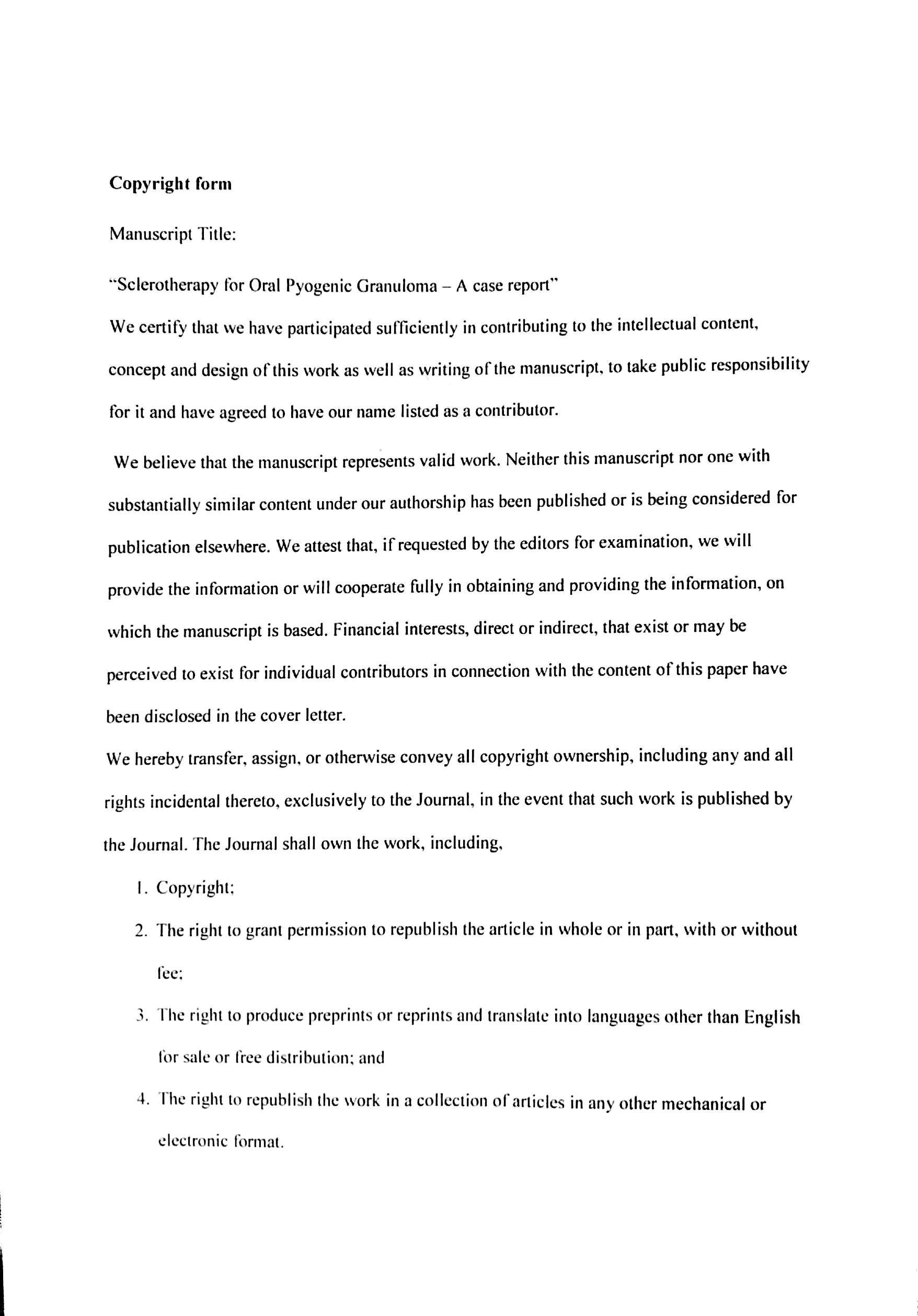 Sclerotherapy for Oral Pyogenic Granuloma – A case report