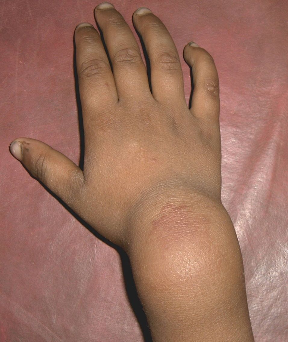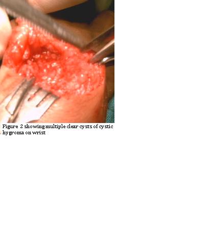 Cystic hygroma is the rare congenital lesion. This is a cystic variety of lymphangioma. Cystic hygroma arising outside of the cervicofacial, thoracic, and abdominal areas are extremely rare. Wrist is a very rare site for occurrence of cystic hygroma. Presentation depends on site of location of cystic hygroma. A case of cystic hygroma of wrist in a child is reported. This child presented with painless swelling of left wrist. Excision of cyst was done. This is first case report of literature reporting occurrence of cystic hygroma on wrist.
