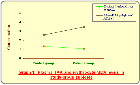 Result: Plasma TAA, serum potassium, magnesium and calcium levels were significantly low in patient group (p<0.05) as compared to healthy controls whereas erythrocyte MDA levels were significantly high in OA subjects. However, serum sodium levels were increased insignificantly (p<0.1) in OA subjects.