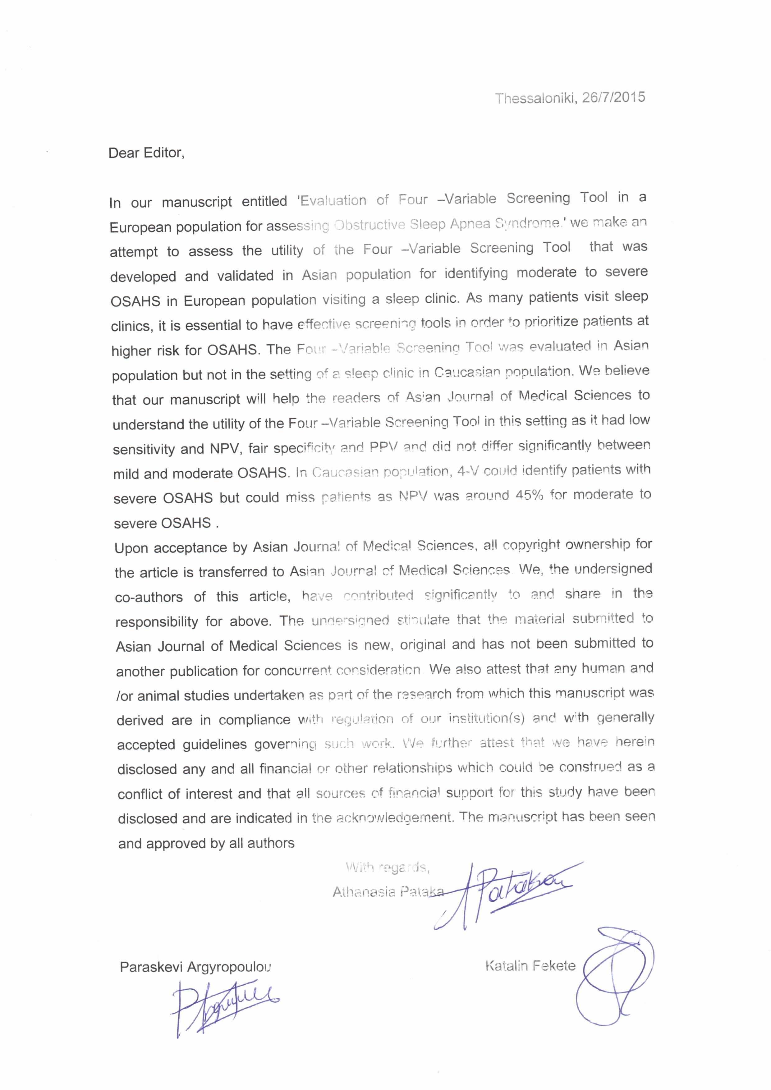 4-Variable screening tool, ESS, evaluation, sleep apnea, sleep clinicAbstract