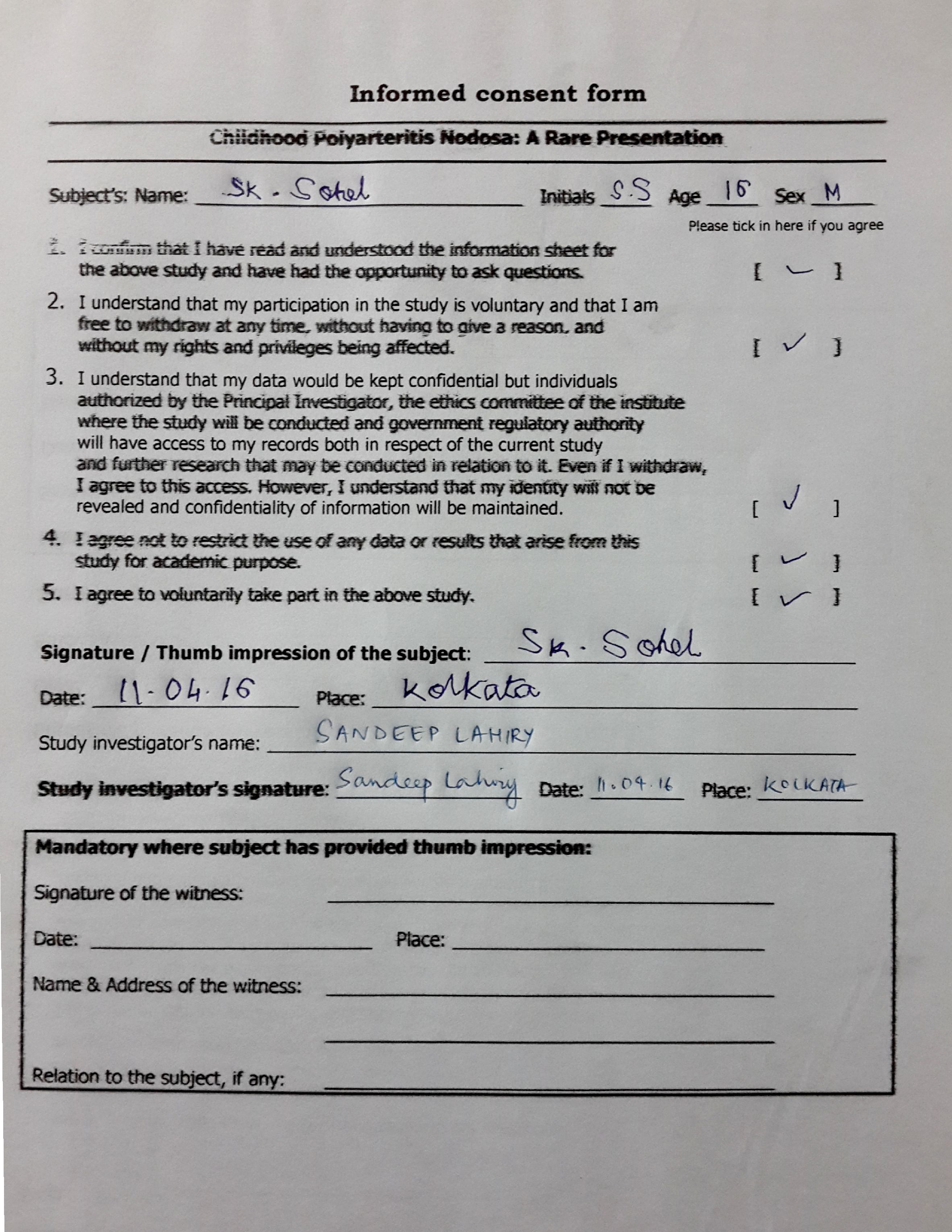Here, we present a case of a 16year old boy with multiple skin ulceration, digital gangrene with few non-specific signs and symptoms, diagnosed as a case of PAN, underwent regular therapy and follow-up.