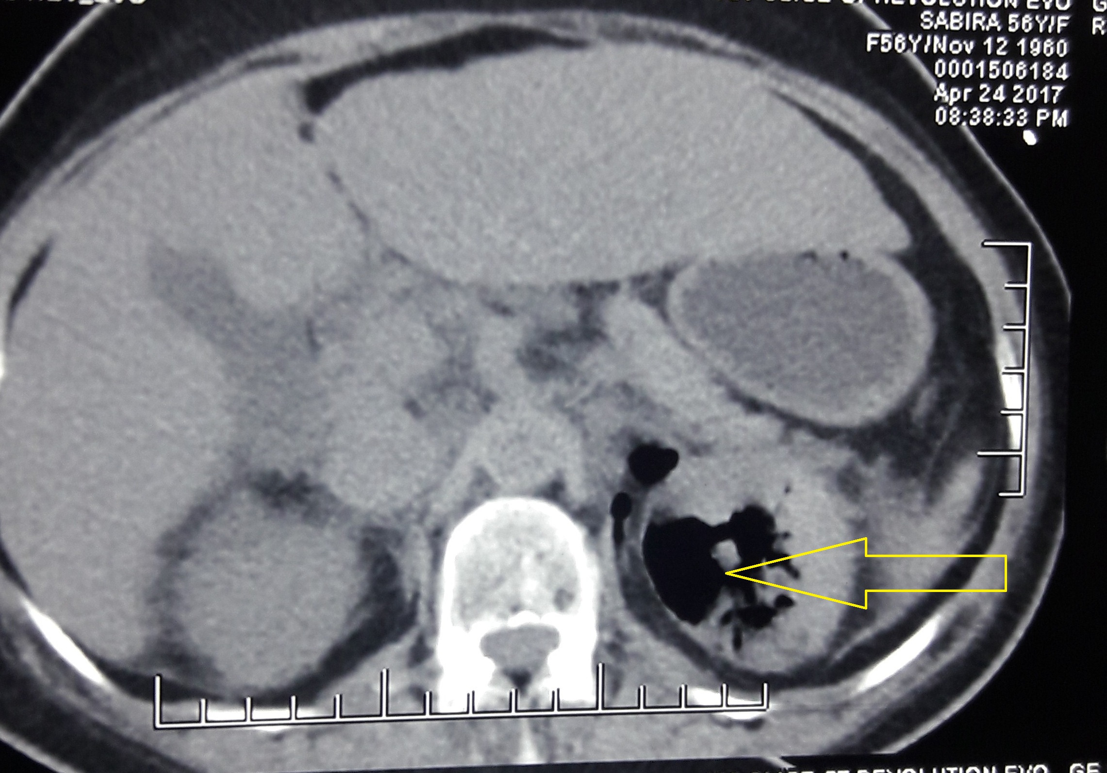 Emphysematous pyelonephritis is a life threatening acute necrotizing infection with associated gas formation involving the renal parenchyma and perinephric tissues. Dengue fever, according to the WHO, is the most rapidly spreading mosquito borne viral infection in the world. Dengue Hemorrgahic Fever is a more severe form of dengue fever and is characterized by fever, bleeding manifestations, plasma leakage and thrombocytopenia. This is a case of a 56 year old female, who presented with history of fever, headache, myalgia and dysuria; and was diagnosed to have emphysematous pyelonephritis with Dengue Hemorrgahic Fever. She was successfully managed with intravenous antibiotics and platelet transfusions, without any urological interventions.