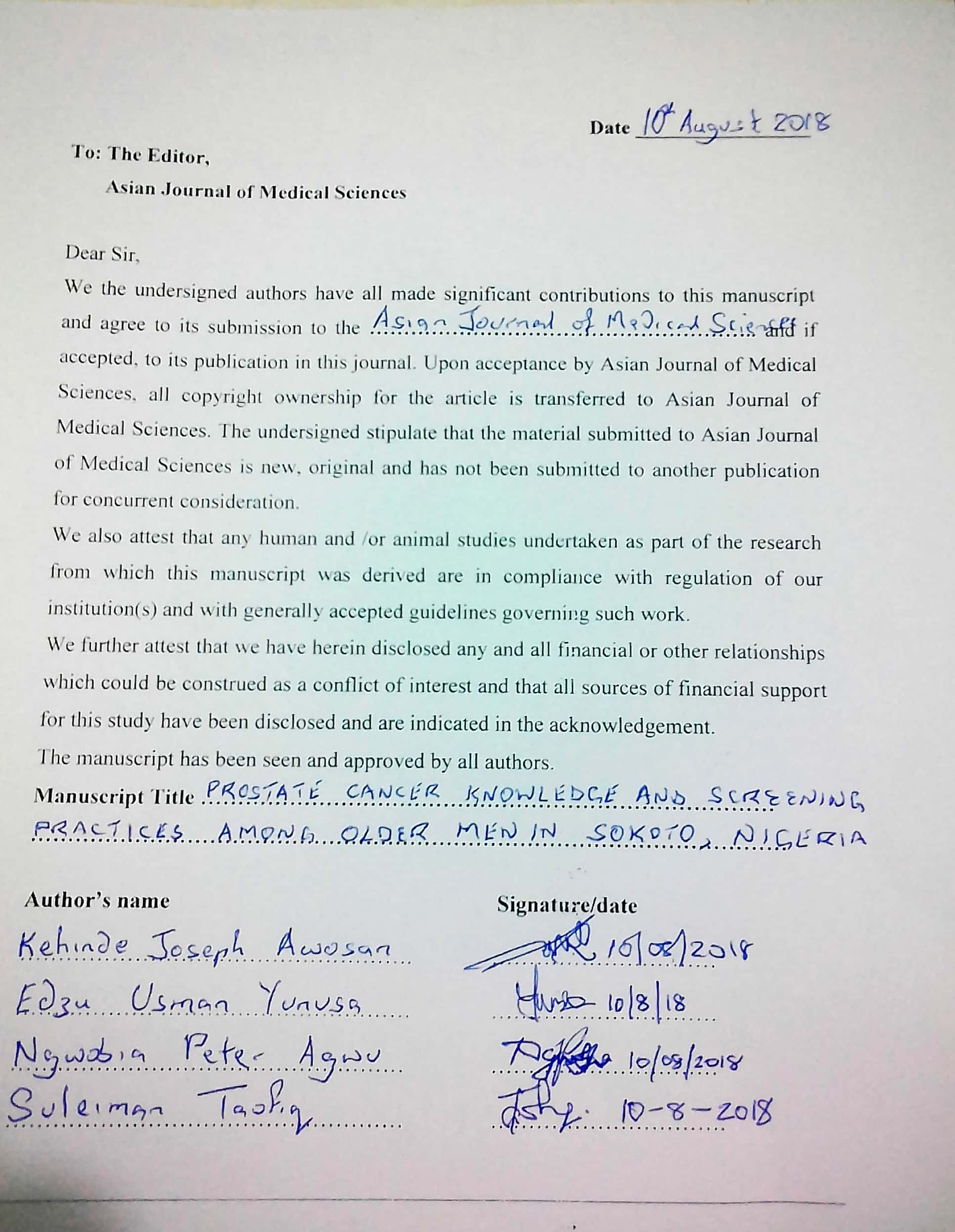 Knowledge of prostate cancer and screening practices among men in Sokoto, Nigeria