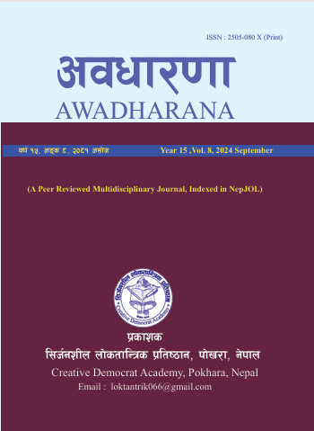 AWADHARANA is a peer-reviewed, multidisciplinary journal published by the Creative Democrat Academy, Pokhara, Nepal. It encourages submissions from those who focus their research writings on philosophy, art and literature. In short, it aims to include writings on social as well as natural sciences to impart information, skills and inspiration to learners of various pedagogical fields.