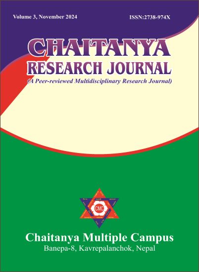 Chaitanya Research Journal is published by the Chaitanya Multiple Campus, Banepa, Kavre, Nepal. The journal aims to publish academic/research articles in multidisciplinary areas. The target readers of the journal are university students, teachers, researchers, etc.