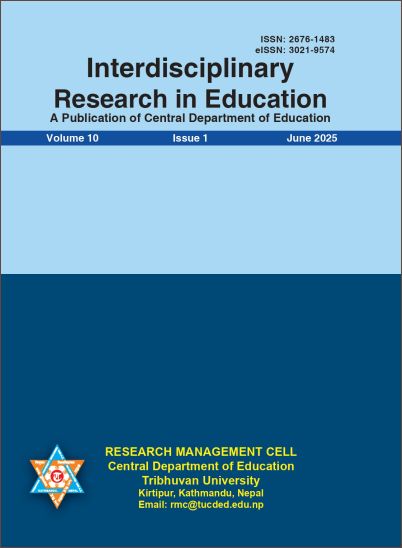 This is a peer-reviewed journal that is a publication of the Research Management Cell, Central Department of Education, Tribhuvan University, Kirtipur, Kathmandu, Nepal. This journal publishes research-based articles in interdisciplinary areas of education from Nepal and abroad. The concerned researchers and authors are encouraged to submit their research-based manuscripts. In addition, this journal also publishes articles that provide meta-analysis of the the previous knowledge or any kind of scientific and systematic reviews that contribute to interdisciplinary areas of education.