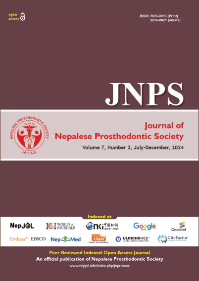 The Journal of Nepalese Prosthodontic Society (JNPS) is the biannual official publication of the Nepalese Prosthodontic Society and is devoted to the field of prosthetic dentistry.