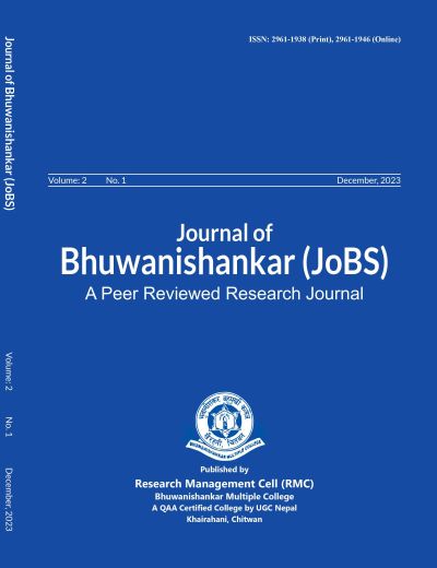 The Journal of Bhuwanishankar (JoBS) is a peer-reviewed multidisciplinary research journal published by the Research Management Cell (RMC), Bhuwanishankar Multiple College, Khairahani, Chitwan, Nepal. JoBS is devoted to publishing high-quality research papers using multidisciplinary approaches with a strong emphasis on emerging issues in business, economics, education, management, finance, administration, language, literature, and social issues.