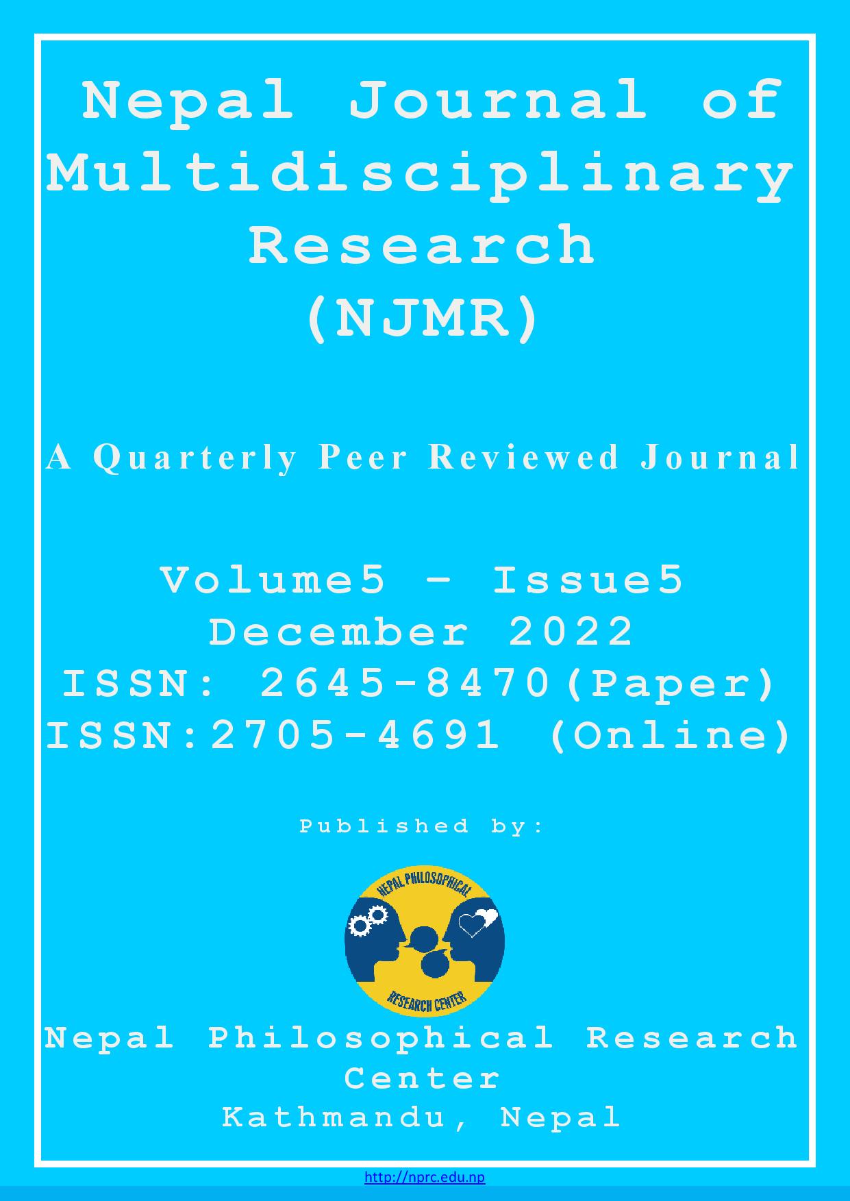 The Nepal Philosophical Research Center (NPRC) is responsible for the publication of the "Nepal Journal of Multidisciplinary Research (NJMR)," a peer-reviewed journal that comes out quarterly. NJMR is dedicated to encompassing a wide array of disciplines, including Sociology, Anthropology, Economics, Political Sciences, Geography, Agriculture, Forestry, Management, Education, Literature, Information Technology, and Public Health. The journal is open to a variety of article types, including those based on experience, reviews, and original research. NPRC is committed to fostering the creation of new knowledge through research, and as such, it actively encourages individuals with an interest in these diverse fields to contribute and publish their work in NJMR. The primary aim of the journal is to facilitate the sharing of knowledge among scholars on a global scale. By providing a platform for researchers to disseminate their findings, NJMR contributes to the advancement of understanding and collaboration within the academic community.