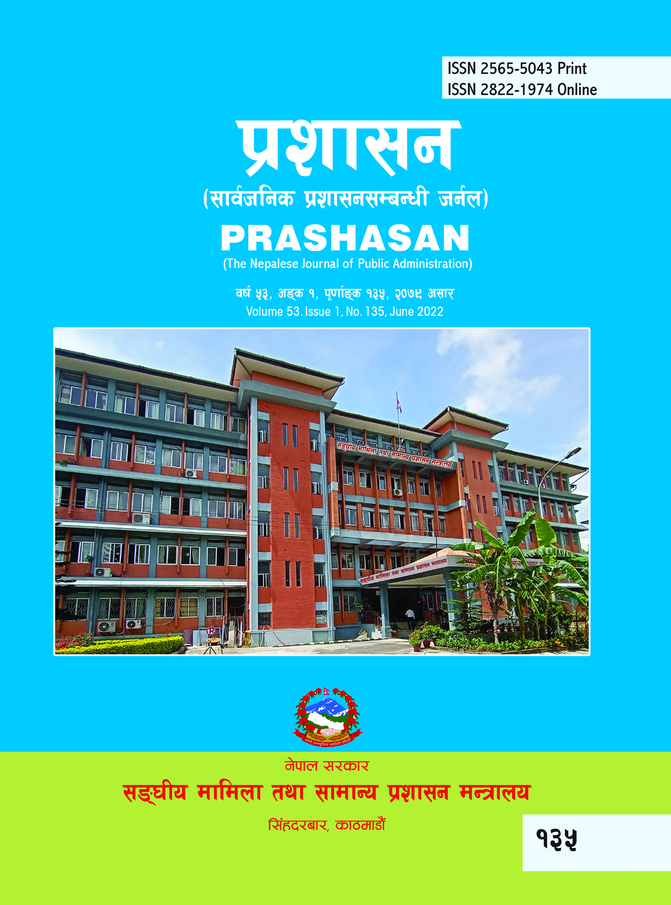 Prashasan is a peer-reviewed journal published by Ministry of Federal Affairs and General Administration. This journal has been publishing since 1968 (2025 BS).