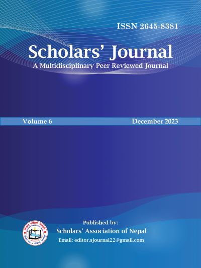 Scholars' Journal is a multidisciplinary peer-reviewed journal published by the Scholars' Association of Nepal, Mahendranagar, Kanchanpur, Nepal.