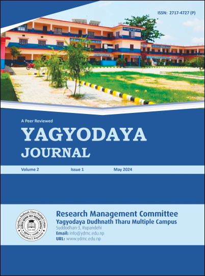 YAGYODAYA Journal is a multidisciplinary, bilingual and annual publication of Research Management Committee (RMC) Yagyodaya Dudhnath Tharu Multiple Campus Suddhodhan-3, Rupandehi, Nepal.